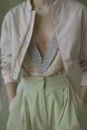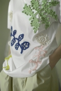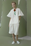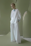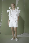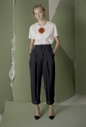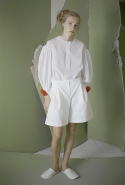 Ни глухие рубашки с шитьем по линии пуговиц, ни объемные брюки самого небрежного вида, ни целый блок в темных, «земных» тонах не переубедят нас в том, что новая коллекция Вики Газинской — одна из ее самых мечтательных и трогательных. Несмотря на все отвлекающие маневры по-прежнему кажется, будто дизайнер с улыбкой оглядывается на собственное детство. Или детство вообще — как воплощение самой радостной и безмятежной части жизни почти любого человека.