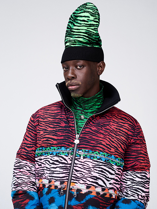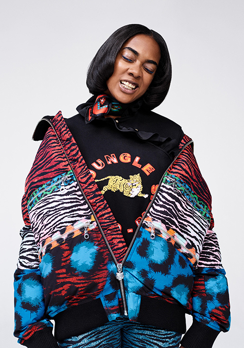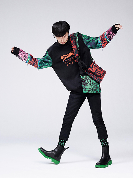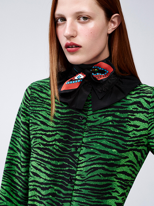 В коллекцию Kenzo x H&M вошли принтованные свитшоты, водолазки в красную и зеленую зебру, замысловато скроенные платья, юбки с воланами, парки, бомберы, рюкзаки и аксессуары вроде длинных кожаных перчаток, шапок, шарфов и маленьких сумок.