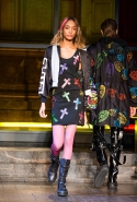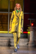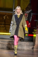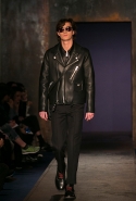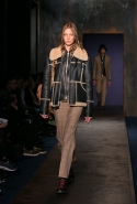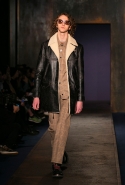 Главная роль в этой осенне-зимней коллекции вполне предсказуемо досталась верхней одежде — в том числе объемным курткам с пышной отделкой из овчины, которые стали с приходом нового дизайнера одной из основных фишек Coach. С ними спорят такие же объемные кожанки, нарисованные нарочно плавными, закругленными линиями, и плюшевые шубы, которые достались и мужчинам, и девушкам, также вышедшим в этот день на подиум.