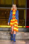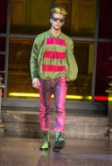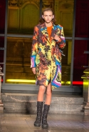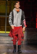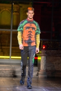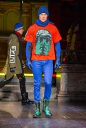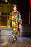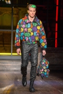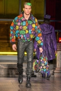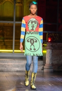 Как и все коллекции Джереми Скотта для Moschino, новая получилась яркой, пестрой и в тех же традициях «вырви глаз». Только очевидных поп-культурных героев в ней на этот раз не было: ни тебе Сильвестра, ни Поросенка Порки, ни Барби, ни даже Губки Боба. Скотт решил перейти на новый, менее очевидный уровень и для этого обратился к британским художникам Гилберту и Джорджу. Для дизайнера не в новинку обвинения в плагиате от других арт-деятелей, менее известных, так что на всякий случай уточним: на этот раз все легально и по взаимному согласию.
