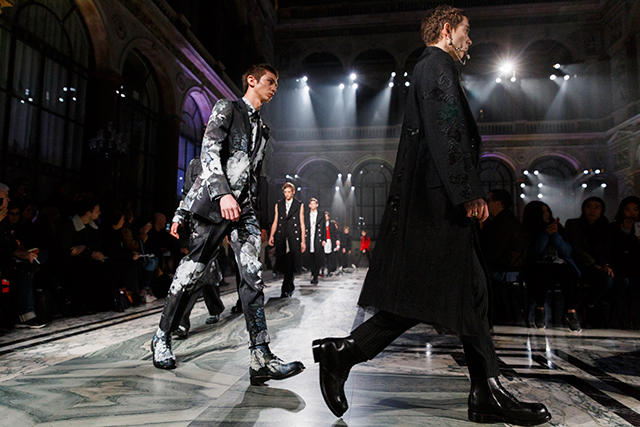 Неделя мужской моды в Лондоне, судя по всем прошедшим показам, — самая необычная из всех, которые ждут нас впереди. Гендерная амбивалентность здесь остается главной тенденцией, а экспериментальных и бойких молодых марок больше, чем на всех последующих вместе взятых. Так что показ Alexander McQueen, построенный на классических костюмах, приправленных цветочными принтами, и разных вариациях военной формы, выглядит на их фоне самым сдержанным, спокойным и привычным. Конечно, для многих даже рисунок из цветов в мужском гардеробе до сих пор кажется чем-то выдающимся и практически маргинальным, но этим людям, очевидно, отставшим от моды, можно посоветовать разве что дождаться Милана — там все точно будет спокойнее.
