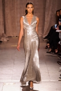 В своей новой коллекции Зак Позен решил отказаться от бальных нарядов и сделать платья, чуть более расслабленные и приближенные к жизни. Единственный старомодно роскошный и по-королевски пышный наряд достался Наоми Кэмпбелл, которая закрывала показ