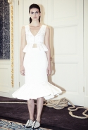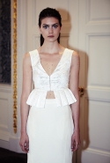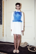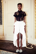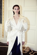 По словам самой Натальи Зинько, в поисках вдохновения она на этот раз обратилась к первой половине XX века. Пока на неделях моды в Нью-Йорке и Лондоне другие дизайнеры признаются в любви к 60-м и 70-м, Зинько захватывает период от начала 20-х прямиком до 50-х — размах серьезный. Но прямых отсылок к конкретным эпохам в коллекции почти нет, что позволяет избежать предсказуемости при обращении к архивам. Увлечение прошлым читается в отдельных элементах: бантах, жемчуге, классических силуэтах, которые Наталья преображает, добавляя неожиданные детали и объемы: воздушные рукава с подчеркнутыми плечами, баски и жесткие воланы с заломами, идущие по подолу юбок.