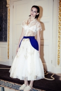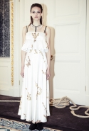 А золотые якорьки, украшающие платья и шелковые топы, в сочетании с бело-голубой цветовой гаммой навевают ассоциации с морскими путешествиями. Аналогичную тему продолжает и линия украшений в виде тех же якорей, птиц и рыбок.