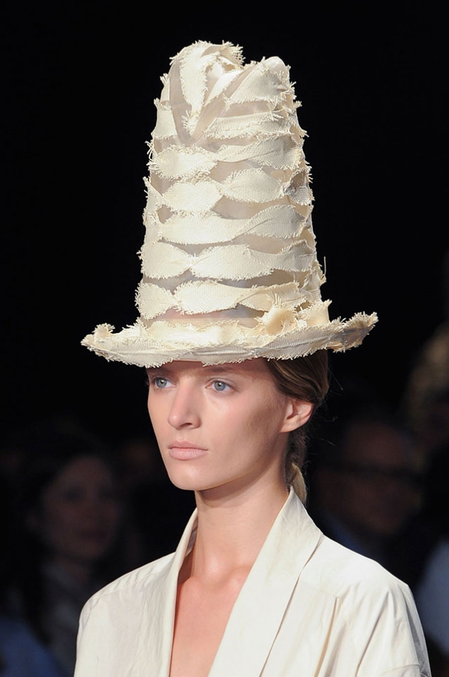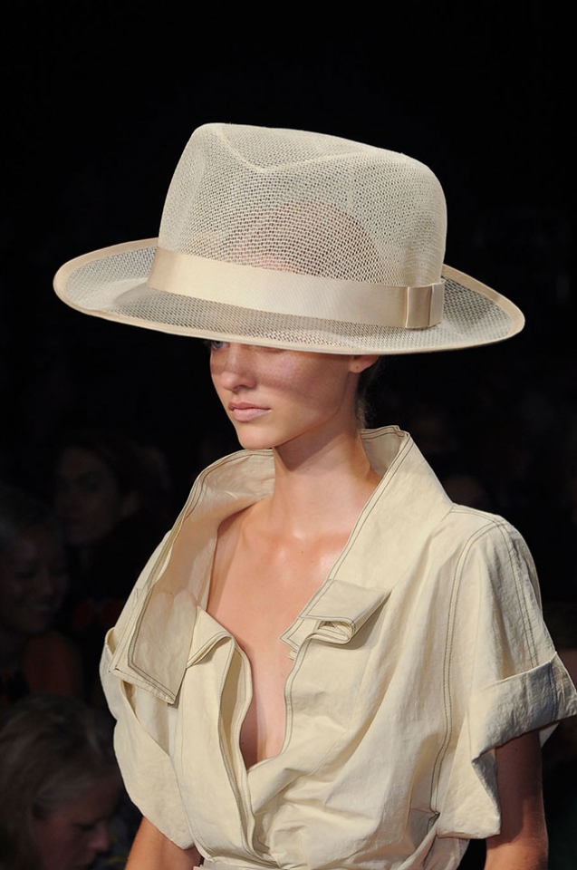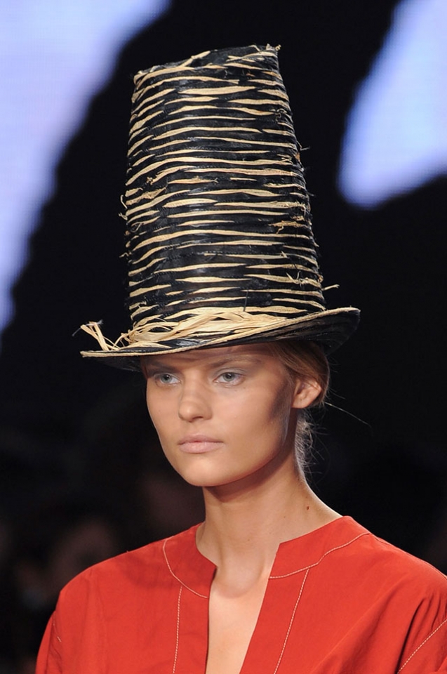 Если этой осенью главным аксессуаром станет Большой Шарф (большие буквы подчеркивают царские масштабы самого шарфа), то следующей весной пальму первенства, похоже, перехватят Странные Шляпы. Начинаем выбирать своих фаворитов: может быть, эта шляпа пасечника от Donna Karan?
