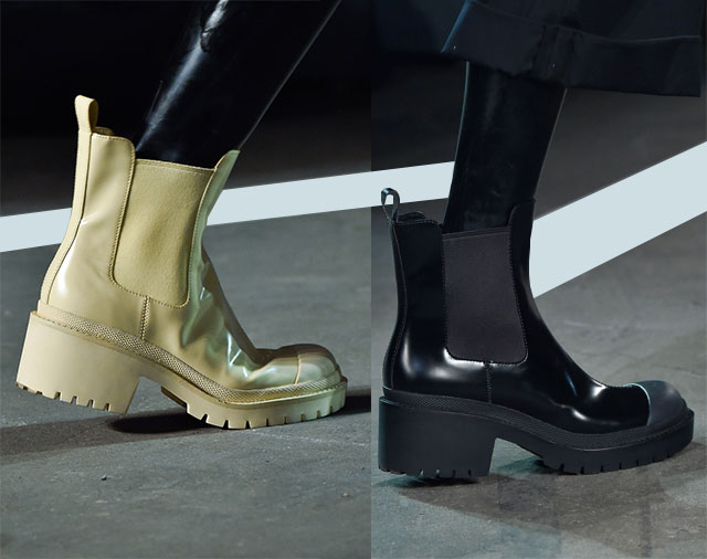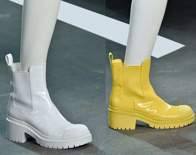 Особенного внимания на показе Alexander Wang достойна и обувь. Не то чтобы она была особенно выдающейся, просто среди представленных экземпляров нет ни одной пары кроссовок, что автоматически выделяет ее на фоне целиком "кроссовочной" коллекции.