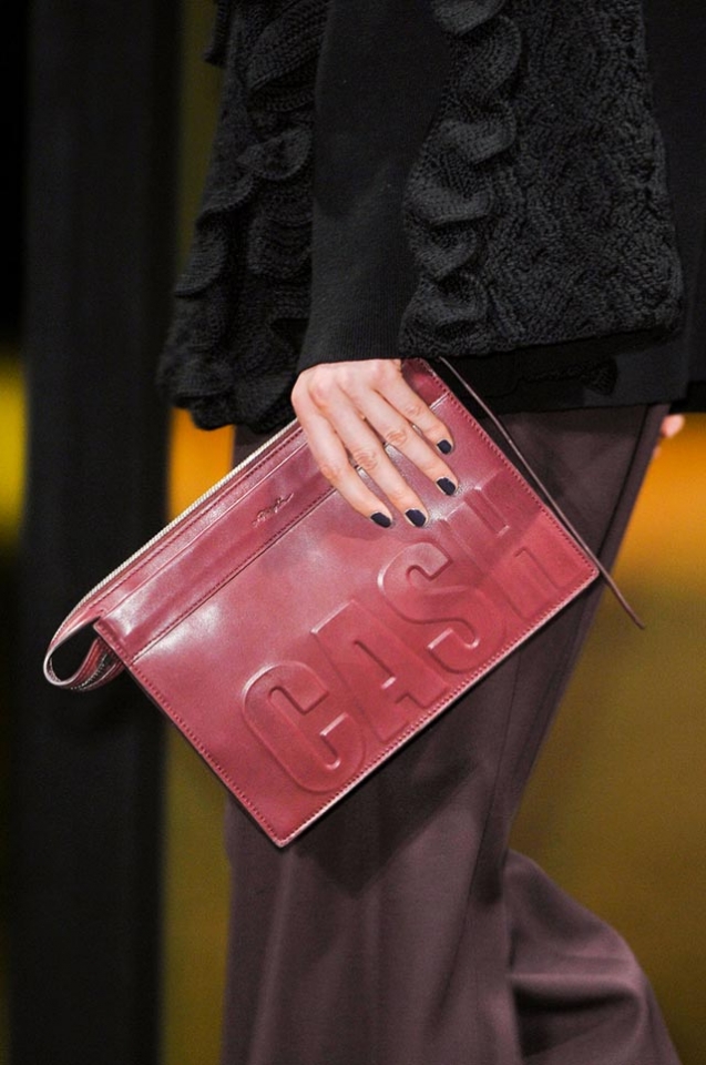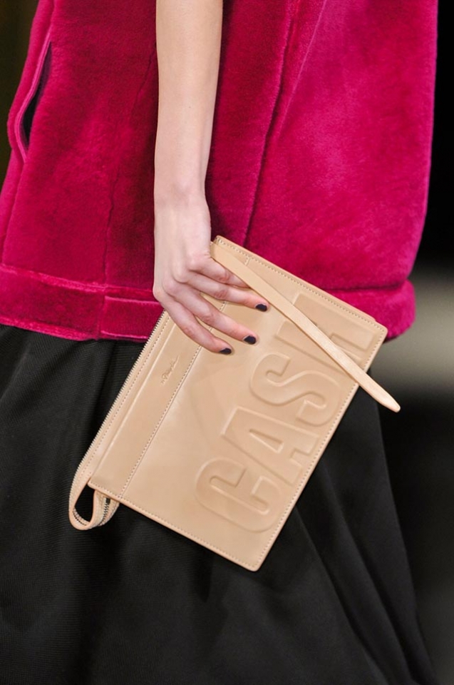 Еще недавно все с ума сходили по клатчам Lanvin с надписями Love и Enjoy и их же кулонами Happy, а теперь свою версию "говорящих" аксессуаров выпустил и Филлип Лим. Большие кожаные квадраты и аккуратные клатчи-прямоугольники в трех цветах — бордовом, бежевом и черном — содержат немного другие призывы и послания. Золотая тройка от 3.1 Phillip Lim: Amaze, Totes, Cash. Мы в редакции выбираем Amaze — ну, или сash, но только наличными, а не кожаными изделиями.