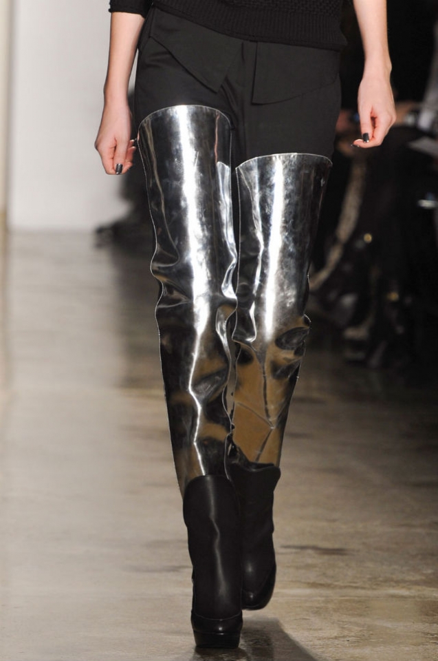 Без сотни вариантов ботфортов не обходится ни один осенне-зимний сезон — и этот, разумеется, тоже не стал исключением. Нам, конечно, очень понравились и меховые Marc Jacobs, и фетиш-сапоги Donna Karan, и много других вариантов, но запомнились больше остальных ботфорты Jeremy Scott и Ohne Titel. Первые — за то, что выглядят так, будто составлены из обрезков разорванных на куски кед, и на самом деле ботфортами только прикидываются. А вторые — за их абсолютно космический вид. Да и остальная обувь в обеих коллекциях заслуживает не меньшего внимания.