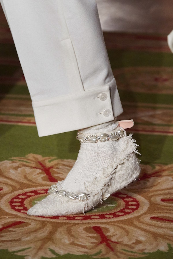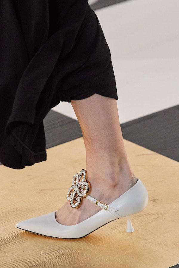 Не просто мерцающая пряжка, а россыпи жемчуга как у Simone Rocha, увесистые цепи как у No. 21 или кристаллы на ремешках, как у JW Anderson. Теперь украшения нужны не только вам, но и вашей обуви.