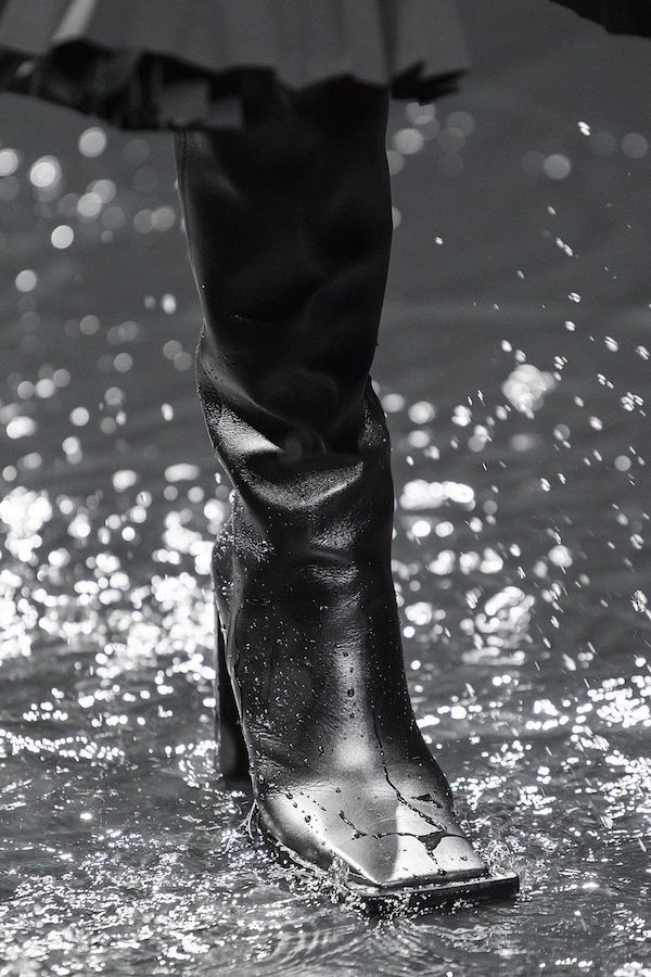 Фундаментальная тенденция последних сезонов — надежные вещи. Люди на планете хотят не просто выглядеть круто, но и ощущать себя так же; мы стали носить технологичные куртки и стараемся разбираться в составе вещей. Одним из микротрендов этого направления можно считать прорезиненные «лягушки», они же duck-boots, которые изначально были придуманы для охоты на уток в болотистой местности. В новых коллекциях прорезиненный мыс и подошва идут к ботильонам Versace, ботинкам Dior и лакированным сапогам Prada.
