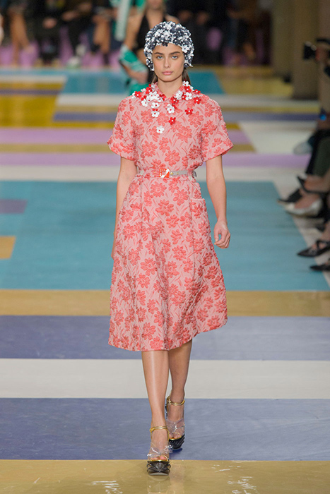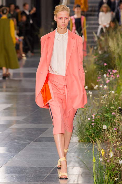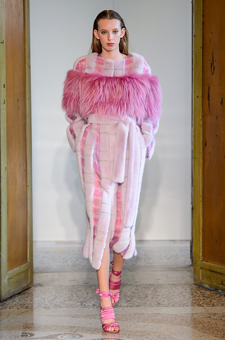 Дизайнеры быстро подхватили тенденцию, и подиумы весенне-летнего сезона зацвели розовым цветом. Пудровое платье в драпировках с накидкой в тон на показе Celine или полупрозрачное платье того же оттенка от Emilio Pucci в паре с яркими красными ботильонами. Blumarine же решил, что межсезонная шуба необязательно должна быть темной и показал на шоу розовое меховое пальто, напоминающее зефир.
