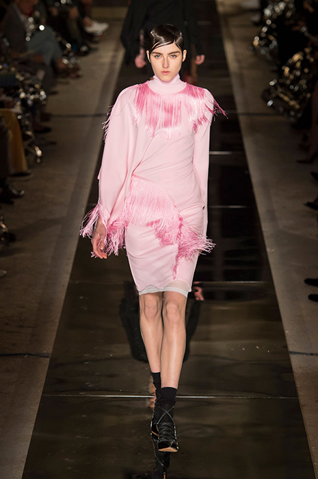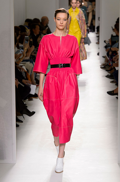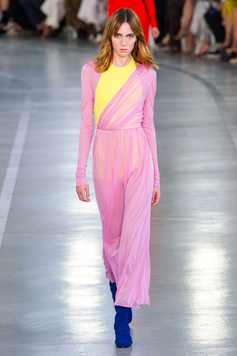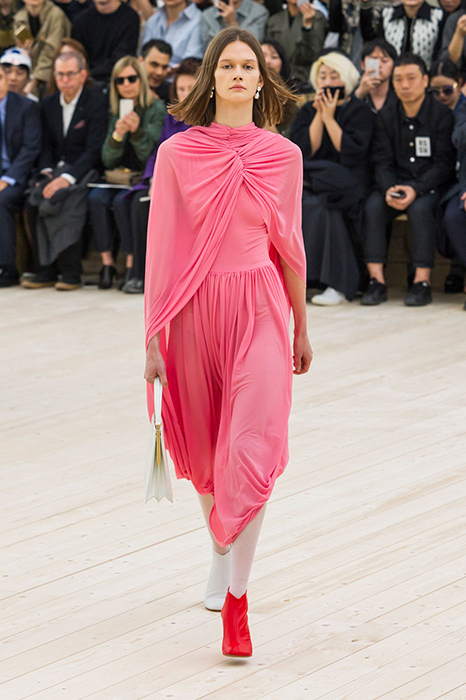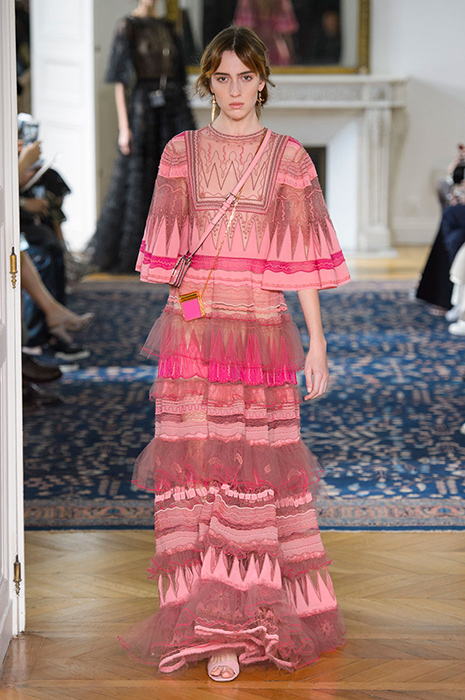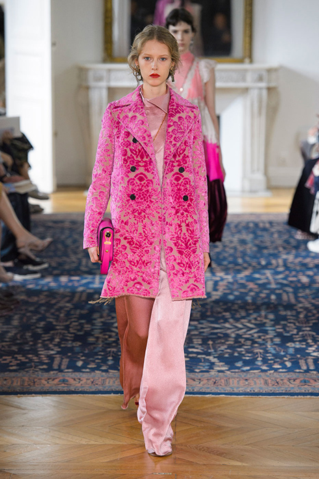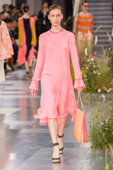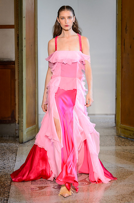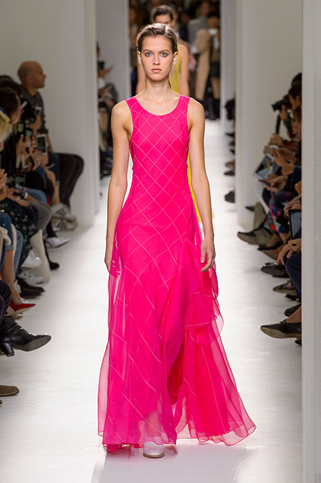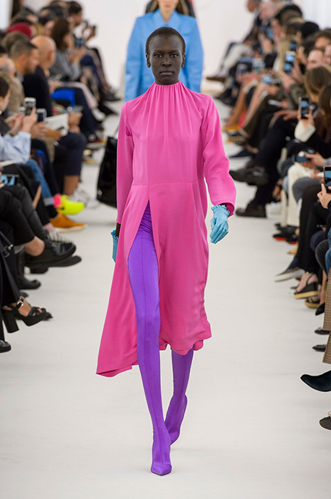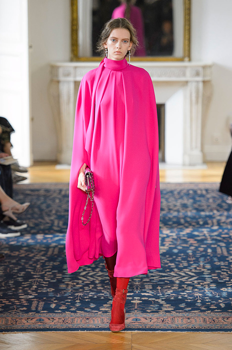 Некоторые бренды взяли за основу своих коллекций яркие тона розового. Так, самыми запоминающимися акцентами на показах Balenciaga и Valentino стали платья лаконичного кроя, в которых простота силуэта компенсируется ярким оттенком фуксии. В весенне-летней коллекции Valentino Пьерпаоло Пиччоли, помимо прочего, смешал два оттенка розового: нежный тон и яркую фуксию. Как результат, на шоу можно было увидеть многоярусные платья разных оттенков розового и брючные костюмы, в которых пастельные тона сочетаются с ярко-розовой вышивкой.