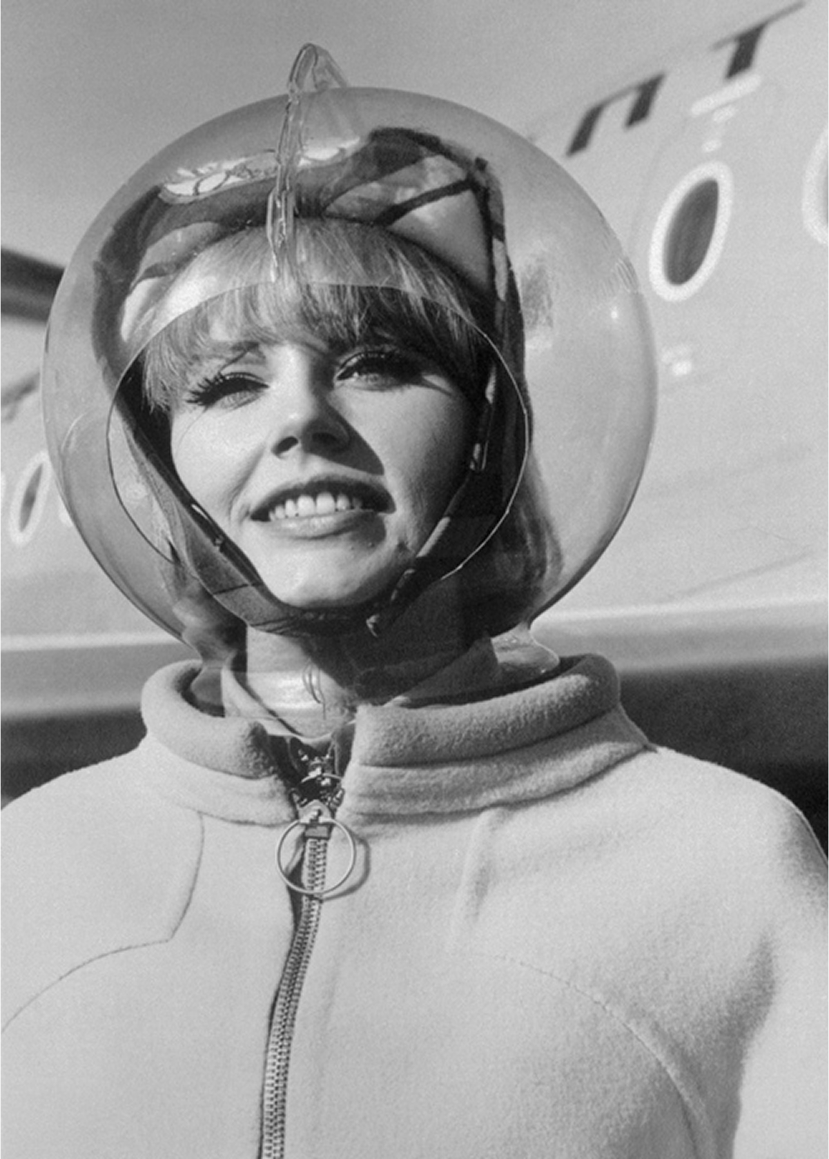 12 апреля 1961 года Юрий Гагарин полетел в космос, а 20 июля 1969 года Нил Армстронг стал первым человеком, который ступил на поверхность Луны. Между этими двумя эпохальными событиями, в 1965 году, Ричард Аведон и арт-директор Рут Ансел сделали яркий во всех смыслах снимок с британской моделью Джин Шримптон в образе первой женщины-космонавта для апрельского номера Harper's Bazaar. Под заголовком «галактическая красотка спешит на помощь» Шримптон позировала в настоящем скафандре астронавта NASA. Апрельский номер эффектно выделялся на фоне того, что делали в Harper's Bazaar во времена Дианы Вриланд, и произвел фурор. Он стал воплощением 1960-х и молодежной революции: женщины набирают силу и покоряют космос, хотя бы на страницах журнала, на обложке был поп-арт, а внутри — материалы про The Beatles и Боба Дилана.