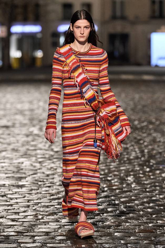 Драпировки формируют чуть сбивчивый, но динамичный силуэт, как будто вы только что закружились в танце (в случае Dries van Noten) или прилегли на диване (Acne Studios). У Loewe, помимо самих вещей, задрапированы детали: крупные украшения и пряжки на ботильонах.