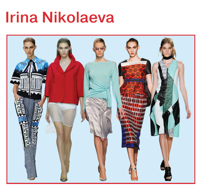 Наш абсолютный фаворит из числа русских моделей — москвичка Ира Николаева, которая уже не первый сезон ходит на шоу самых знаковых марок. Во время весенне-летних недель моды Ира только закрепила свой успех, приняв участие в модных показах Proenza Schouler, Mary Katrantzou, Dolce&Gabbana, Roberto Cavalli, Kenzo, Stella McCartney и многих других. Самым любимым для Иры стал выход на показе Versace. "Такого заряда энергии я не получала ни на одном другом шоу! Здесь мне понравилось абсолютно все: декорации, одежда, аксессуары и, конечно же, девочки-модели, с которыми я работала", — рассказала она Buro 24/7.