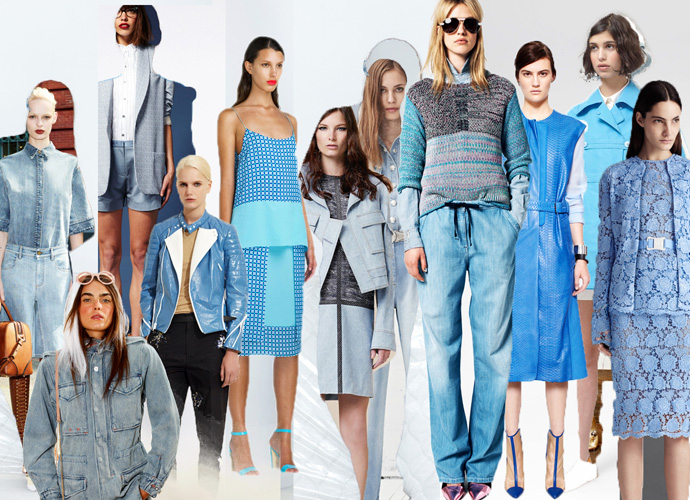 Главный цвет — голубой во всех оттенках от пастельного до насыщенного бирюзового. Наряды из денима выполнены в том же цветовом решении.