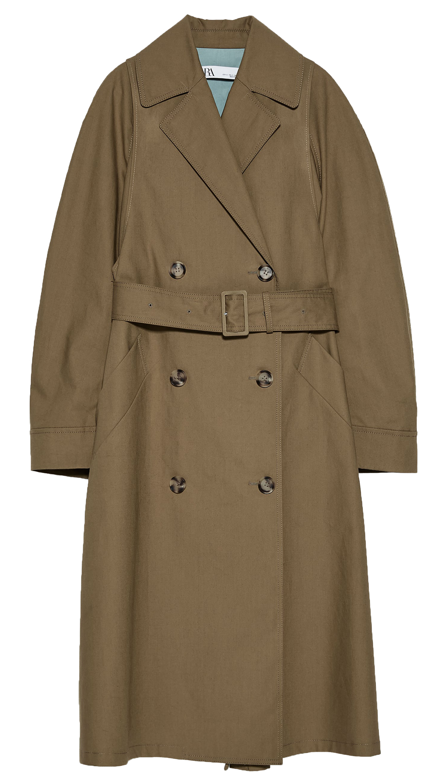 Сдержанность костюма в данном образе сбалансирована кедами с отделкой под змею и объемным тренчкотом. Пиджак можно носить в качестве первого слоя или дополнять футболкой белого цвета. Сумка-ведро завершает образ и поддерживает цветовую гамму верхней одежды и обуви.