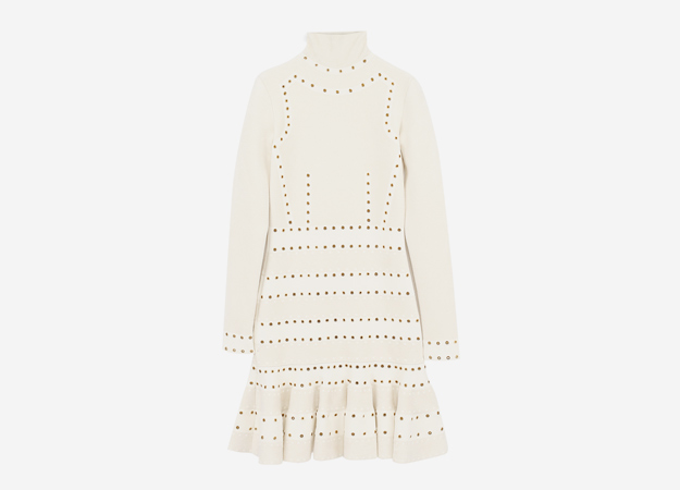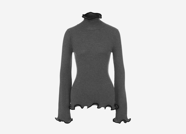 Без водолазок не обходится ни один осенне-зимний сезон, но именно в 2017-м свитеры и платья с высоким воротом стали абсолютными модными хитами. Самый интересный вариант появился на показе Balenciaga — здесь водолазки стали больше похожи на корсет. Другие бренды предлагают носить их под рубашку или пиджак. Альтернативой привычному трикотажному топу стали платья-водолазки. На показе Hermès появился на первый взгляд классический трикотажный вариант, но на самом деле платье было собрано из двух. В коллекции Alexander McQueen трикотажное платье с высоким воротом было не совсем обычным — согласно исторической тематике всей коллекции оно было украшено вышивкой и оборками. Для тех, кому хочется немного большего, чем просто трикотаж, Christian Dior представил платья-водолазки из стеганой ткани.