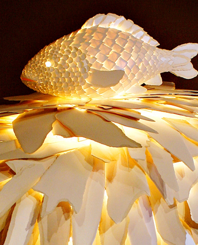 Первую работу из серии Fish Lamps архитектор Фрэнк Гери создал еще в 1984 году. Сам же лейтмотив "очертания и подвижности рыбы", по словам крупнейшего современного архитектора и одного из родоначальников деконструктивизма, присутствовал в его творчестве и художественном понимании архитектуры всегда. Поздние здания Гэри — яркое тому свидетельство. Что музей Гуггенхайма в Бильбао, что музей Уокера в Миннеаполисе, что 35-метровая "плывущая рыба" в Олимпийской деревне Барселоны — во всех этих работах склонность автора к "рыбной" теме очевидна. У нее самой же — еще более глубокие корни: этот лейтмотив служит намеком на любимое блюдо матери Гери — традиционное еврейское "гефилте фиш".