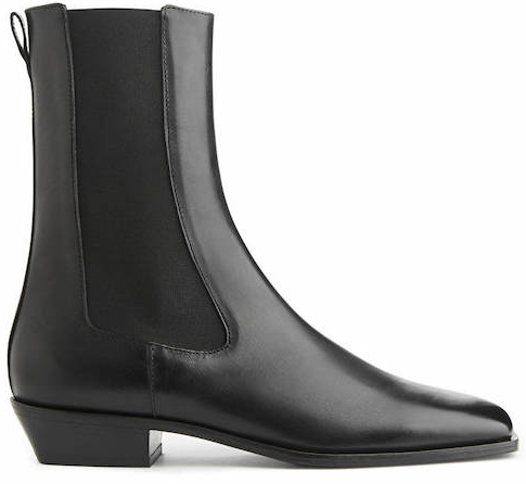 Лонгслив в рубчик пыльно-зеленого цвета и пальто-рубашка в клетку задают настроение образа, которое поддерживают серые джинсы, сумка со шнурком и челси с актуальным в этом сезоне квадратным мысом.
