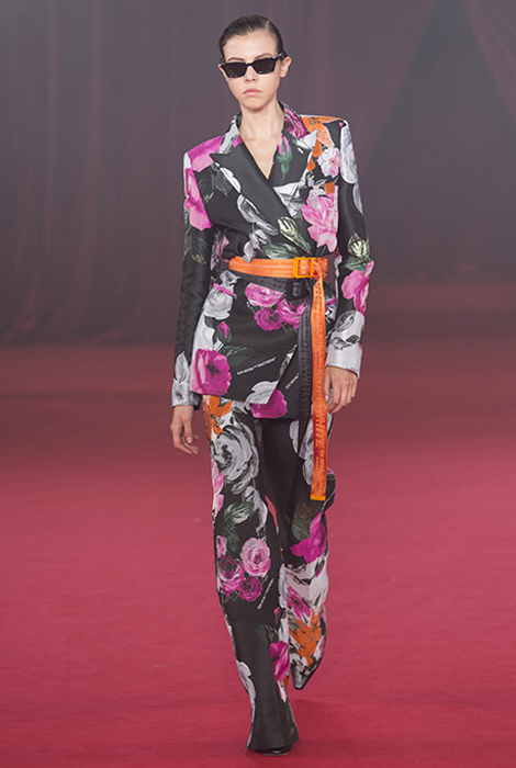 Так, например, в весенне-летней коллекции Off-White атласные костюмы и комбинезоны пришли к нам как будто из гардеробов наших мам в молодости — из 80-х годов. Крупные пионы насыщенного цвета фуксии расположились на контрастном черном и белом фоне — так, чтобы на них было сложно не обратить внимание.