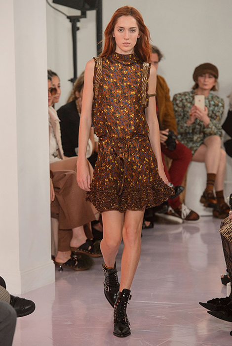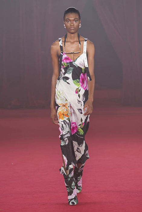 Похожий пример можно было увидеть и на показе Chloé, только там Наташа Рамсей Леви в привычной манере французского бренда выбрала естественную цветовую палитру. Пожалуй, самым оригинальным оказался Кристофер Кейн — у него цветочный принт стал еще одним способом рассказать историю, которая таится за коллекцией: сюжет о домохозяйке, которая в свободное время занимается не самыми скромными вещами, отсюда и сексуальные черные халаты в мелкий цветок.