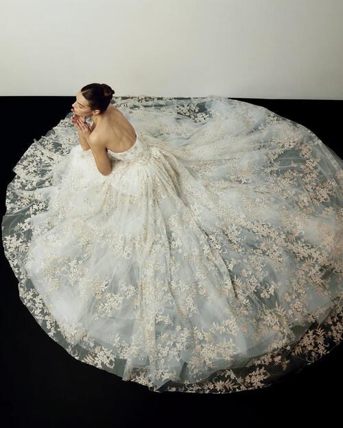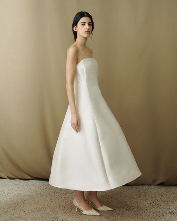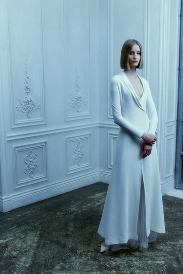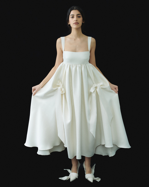 Ателье Edem, которое работает исключительно с кутюром и деми-кутюром, тоже подготовило образы к свадебному сезону. Сшить один такой в зависимости от сложности работы займет от 4 недель до 6 месяцев, так что стоит поспешить. В коллекцию вошло более тридцати моделей — для знакомства на сайте доступно только десять. В их числе шелковое платье на бретелях с вытачками на талии, закрытое с расклешенными рукавами в восточном стиле, опция со шлейфом и открытой линией плеч. Чтобы создать аксессуары для линейки, бренд сотрудничал с Madame Chatelet, а плиссировку делали совместно с парижским ателье Lognon.