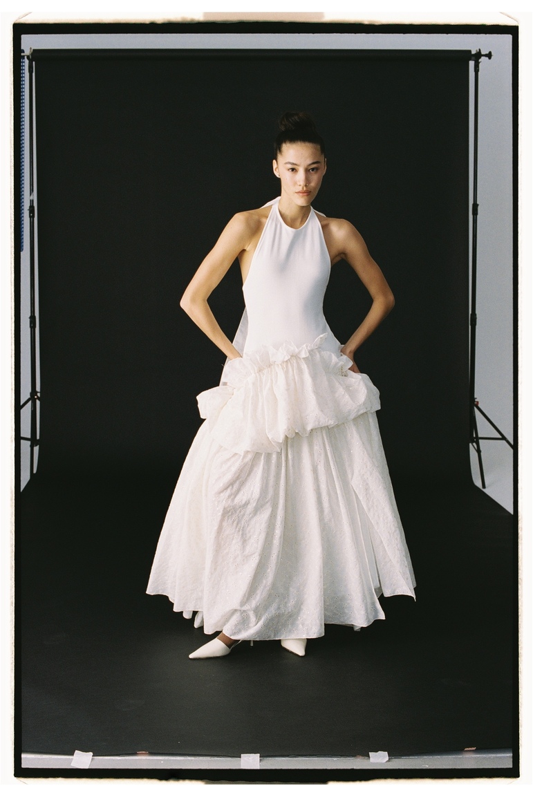 Новая свадебная коллекция стала для петербургского My812 самой большой и нарядной, признается дизайнер и креативный директор марки Альбина Зуева. Она постаралась разработать изделия, которые подойдут под разные форматы торжества и останутся в гардеробе после него. Всего в капсулу вошло десять образов и первый для бренда аксессуар — заколка ручной работы из бука и шелка в коллаборации с Apotropey.