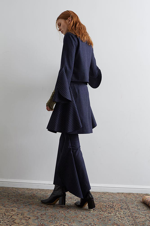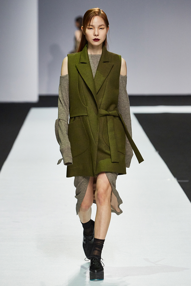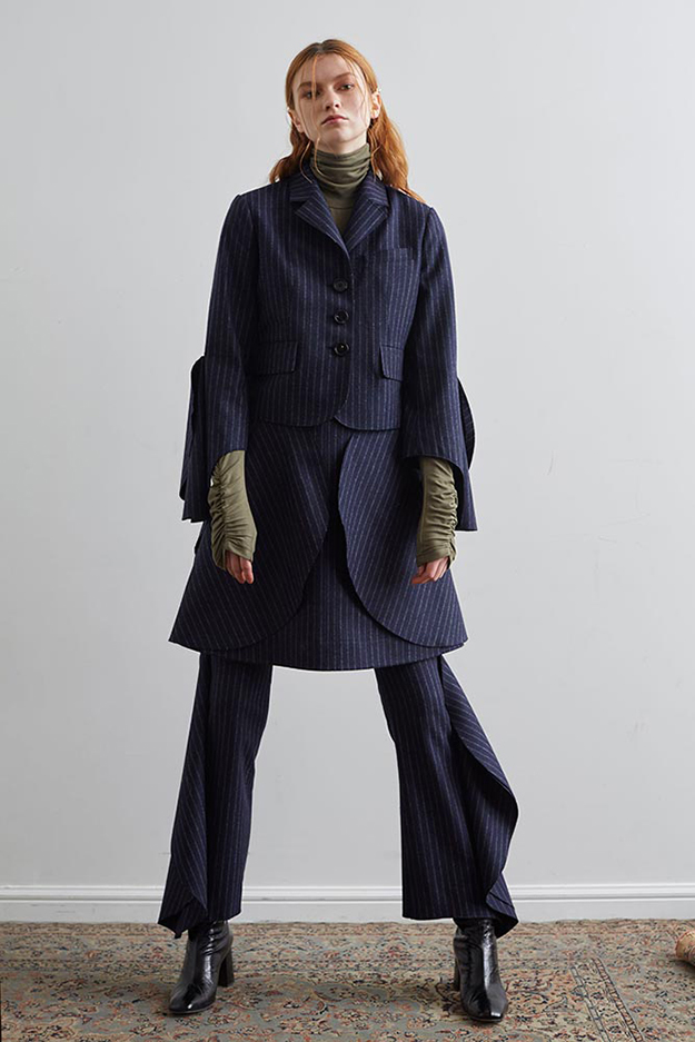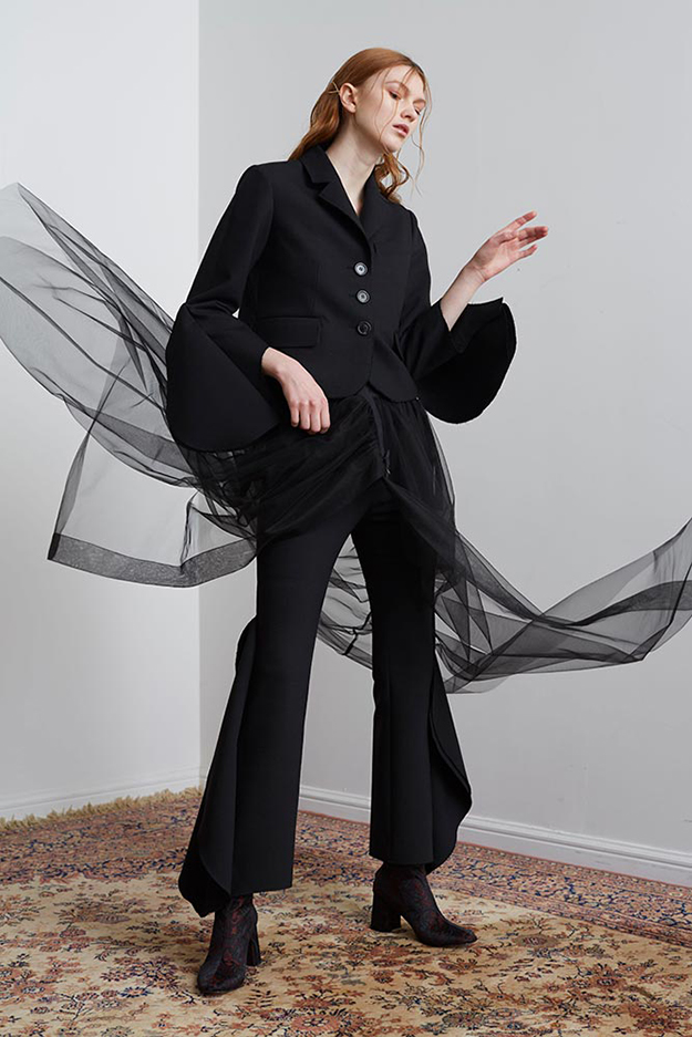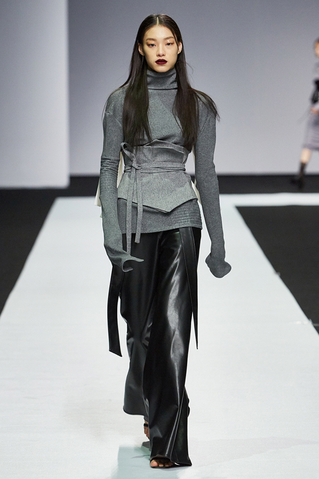 Раньше корейский бренд J Koo во многом ориентировался на британский тейлоринг: в коллекциях всегда можно было увидеть кропотливо скроенные пиджаки и брюки. Однако в последние годы дизайнеры Джинву Чой и Йенджу Ку переосмыслили эстетику своего бренда и теперь работают с упором на современные тренды: с плащами и рубашками соседствует оверсайз, асимметрия и чрезмерный стайлинг.