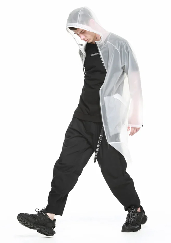 KRAKATAU шьет одежду для тех, кто рассекает улицы мегаполиса в любую погоду, тех, кто вместо фотогеничных вещей для инстаграма выбирает иногда неприметный, но всегда надежный techwear. В новую коллекцию вошли прозрачные дождевики со склеенными ультразвуком швами: длину плаща можно менять, отстегивая и пристегивая «низ». Еще есть куртки с мембраной и маленьким кармашком для проездного на рукаве, тренчкоты с водонепроницаемой пропиткой (марка отказалась от химических обработок и пробует безопасные экологичные варианты) и бесшовные рубашки будто из будущего (швы обрезаются лазером). Полное понимание того, с какой страстью KRAKATAU относится к технологичным деталям, приходит при виде брюк с блокирующей системой RFID. Основатель марки, пожелавший остаться анонимным, верит, что наши банковские карты можно легко взломать, если бумажник лежит в заднем кармане брюк (мошенники делают это с помощью RFID-сканеров): поэтому KRAKATAU использует ткань со специальной металлической нитью, блокирующей эти сканеры. Хорошие новости: KRAKATAU можно купить в Москве — в мае бренд как раз открыл на Кузнецком Мосту свой третий магазин.