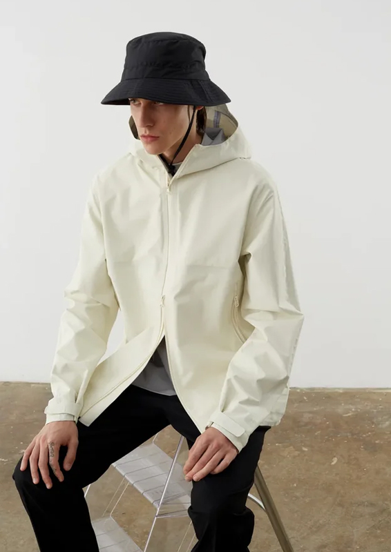 Совершенно новой моделью для SHU стала короткая летняя куртка, из ткани, сочетающей мембрану и нейлон, — вещь можно затянуть, чтобы сделать чуть приталенной, а воротник продуман так, что в него без труда и незаметно прячется капюшон. Все куртки подойдут как парням, так и девушкам — хотя у марки есть отдельная женская линия.