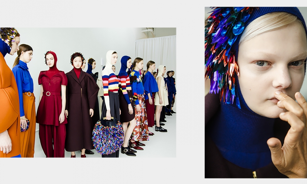 На коллекцию осень-зима 2017 меня вдохновили великолепные произведения искусства. Цветовая палитра перекликается с работами венгерского художника Йожефа Рипль-Ронаи, а округленные силуэты я придумал, увидев «Ленту Мебиуса», скульптуру швейцарца Макса Билла, символизирующую вечность и постоянство. Я хочу верить, что сумел достичь своей цели — выражения загадки при помощи цвета и формы. Создавая аксессуары и вышивки, я обратился за вдохновением к природе, а именно к пестрым перьям колибри и блестящей рыбьей чешуе. Так и появились декор на вязаных топах и сумка «Луна».