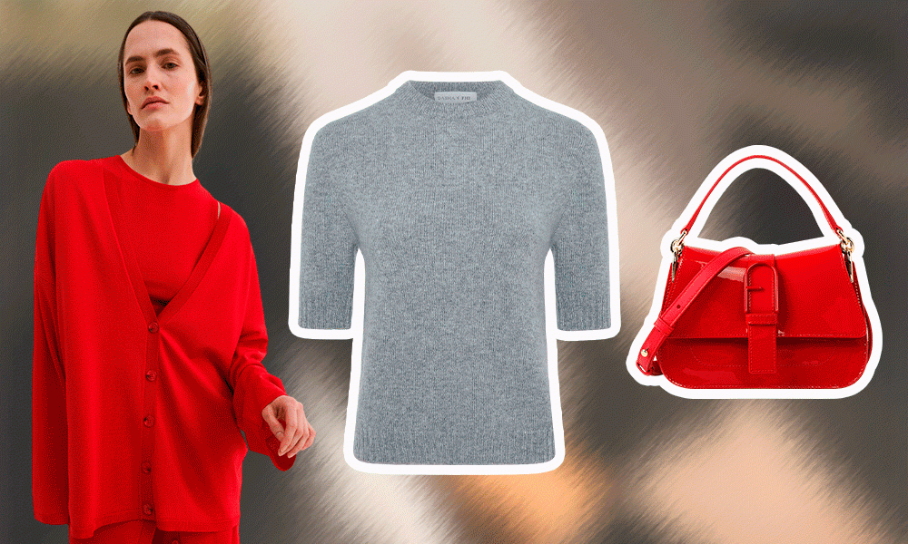 Красный трикотаж не теряет позиций. В подтверждение этому — недавние показы Prada, Bally и Vivetta. Носить лучше всего с синими джинсами.