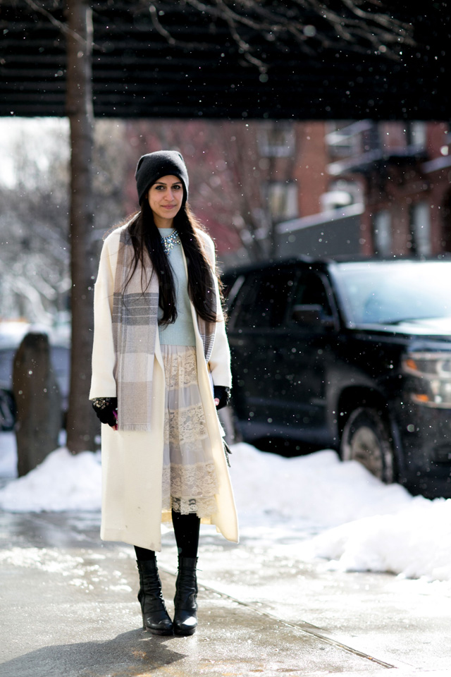 В Нью-Йорке продолжаются непривычные для местных жителей холода — и это отличный шанс взять пару уроков того, как выглядеть стильно даже зимой, у самых модных девушек мира. Уже совсем скоро все они дружной, пестрой и утепленной толпой отправятся в Лондон, где сейчас +9, и все свои дубленки и шубы, скорее всего, отложат на дно чемоданов.