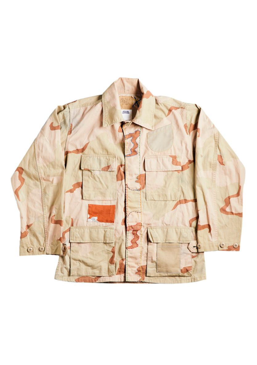 Концепция лос-анджелесской марки звучит так: «0% new production. 100% transformation». Ее основал Маурицио Донади, в прошлом занимавший должности вице-президента Giorgio Armani, Levi’s и руководивший Ralph Lauren, а теперь принявший сторону антиконсьюмеризма. Новые материалы марка Донади не использует вообще — в мастерской Atelier & Repairs работают только с готовыми вещами: дедстоком, полученным от других брендов, а также со старыми военными вещами — для них создана специальная линейка под названием «демилитаризованная зона». К стеганой подстежке от куртки М-65 здесь добавляют подклад и карманы из старой английской гобеленовой ткани. Сами полевые куртки укорачивают на японский манер и вручную расшивают шелковой нитью. Брюки чуть сужают и обновляют контрастной окантовкой или заплатками. Каждое изделие единично и по-своему уникально.