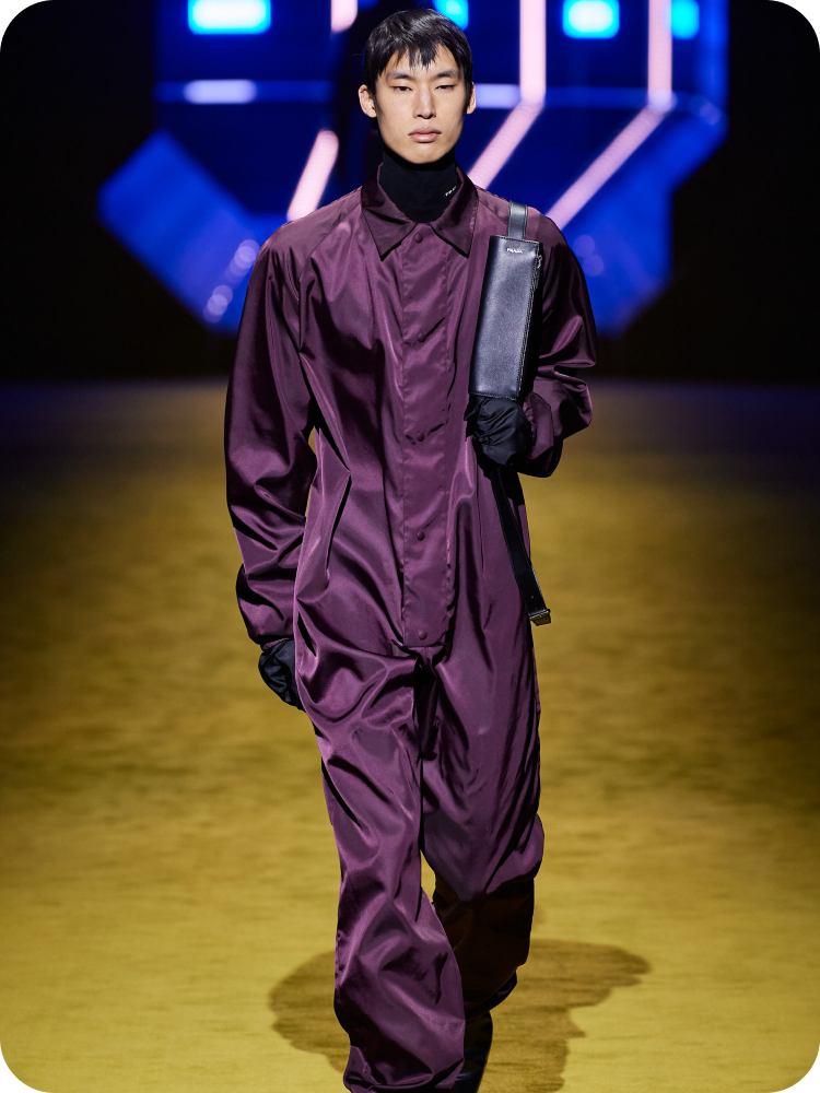 Новая коллекция Миуччи Прады и Рафа Симонса называется «Body of Work» — и в этом названии кроется игра слов. По словам дизайнеров, они хотели исследовать ценность работы в обществе: «Мы думали о моде со смыслом и вещах, в которых люди чувствуют себя важными и значимыми». Поэтому в некоторых образах цитируется рабочая одежда. Комбинезон из нейлона напоминает одновременно униформу механиков, малярный костюм, химзащиту или скафандр космонавтов — короче говоря, универсальная вещь для множества профессий. В коллекции Prada комбинезоны сделаны в нежных оттенках пурпурного, нежно-розового, голубого и салатового.