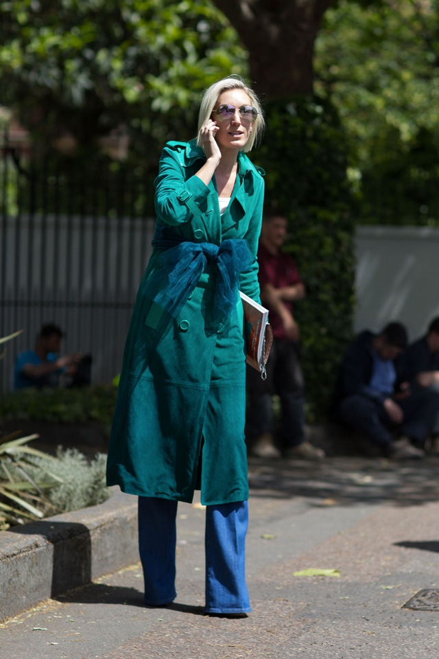 Погода в Лондоне, судя по фотографиям, примерно такая же, как в Москве: все в плащах или легких куртках и почти никто не решается выйти на улицу с голыми руками. Не видно разве что зонтиков, но поблескивающий и темный асфальт все равно вызывает подозрения. Забавно то, что примерно так же обычно выглядят и гости осенне-зимних недель моды, хотя и проходят те зимой: самых отчаянных ни за что не заставить надеть шубу или теплое пальто даже в снегопад.