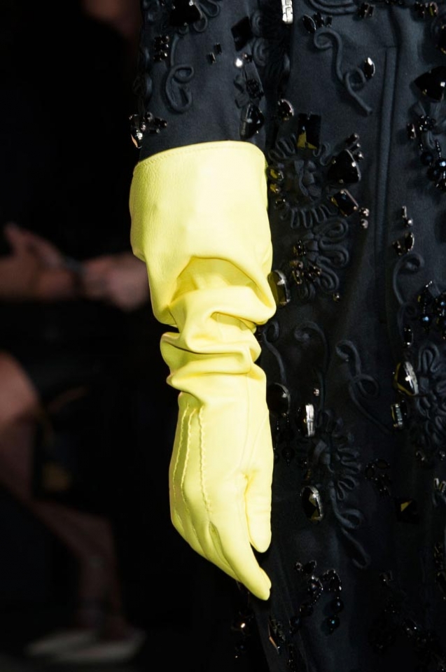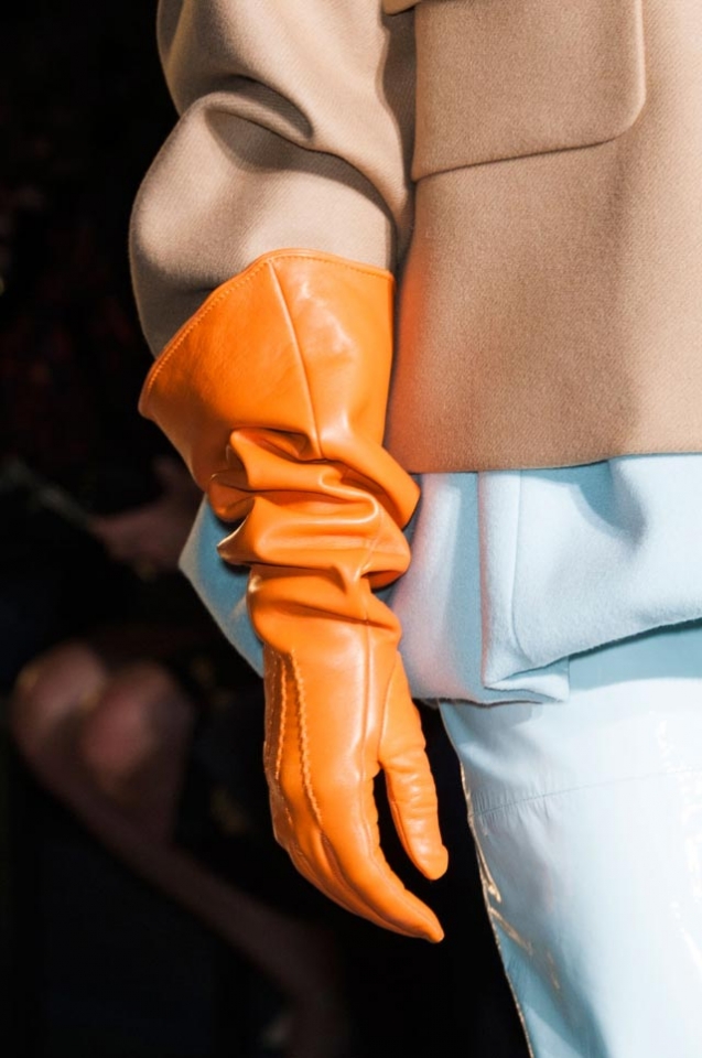 Яркие перчатки Rochas по форме напоминают рабочие: в таких домохозяйки могли бы мыть посуду, а пожарные — тушить огонь. Но судьба распорядилась иначе, и достанутся они модницам — выбирайте пару своего любимого цвета, но дважды подумайте, прежде чем покупать оранжевые.