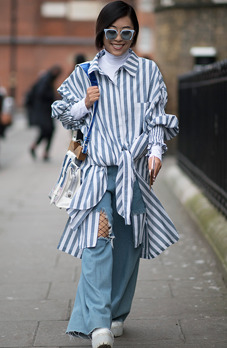 Пальто прямого кроя, Гоша Рубчинский, бейсболки Vetements, эклектичные аксессуары и необычный трикотаж — главные тренды с улиц Лондона в первые дни Недели моды.