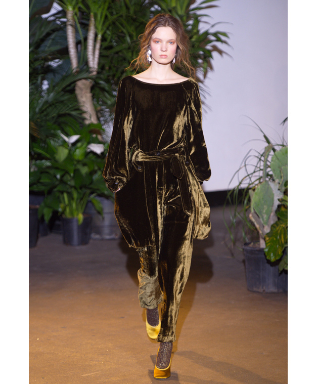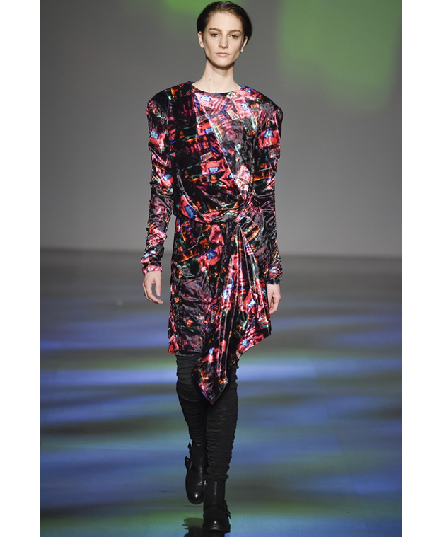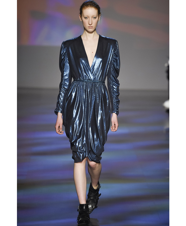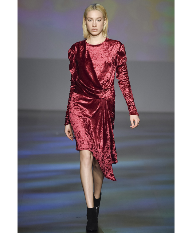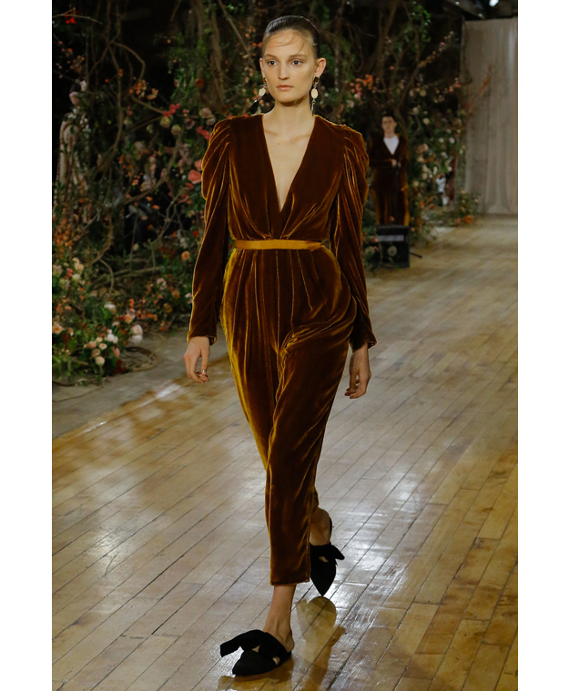 Эпоха нью-вейв и неоромантизма снова возвращается в виде волнистых плечей, драпировок, люрекса, блесток и бархата. Altuzarra, Nicole Miller и Ulla Johnson показали топы с яркими принтами с объемными плечами и комбинезоны, а Vivienne Tam и множество других брендов — платья из люрекса и цветного бархата, украшенные блестками и стразами.