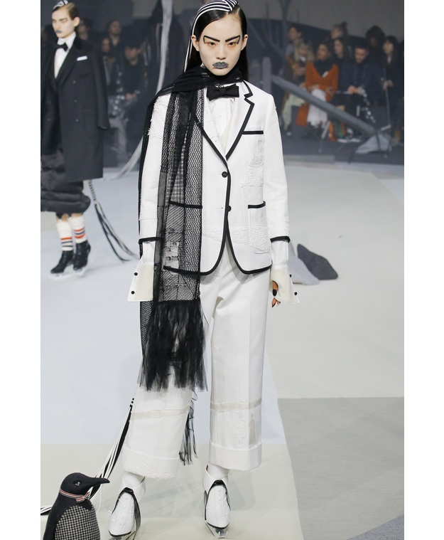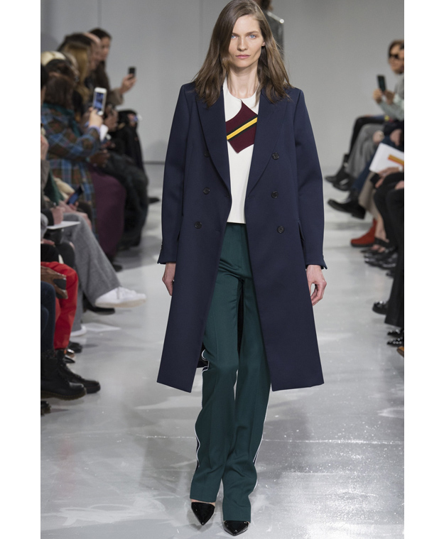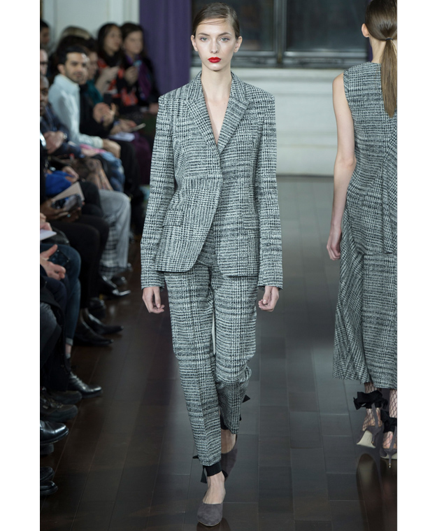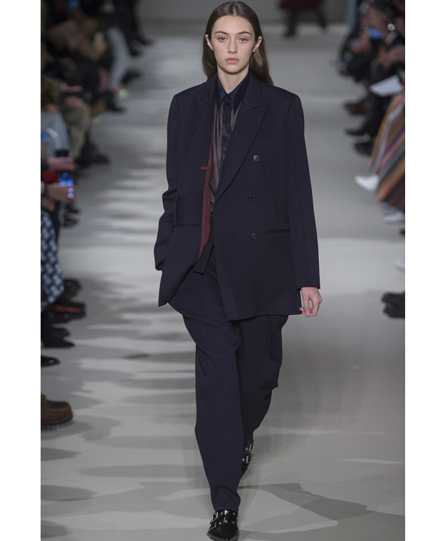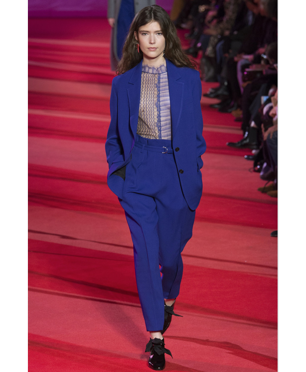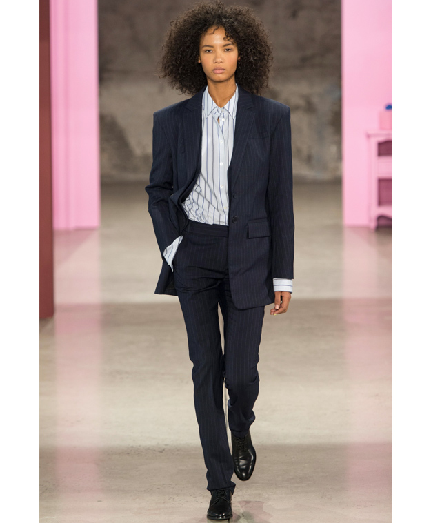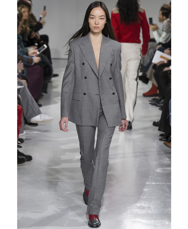 Брючные костюмы мужского кроя в серых и синих тонах появились в коллекции обновленного Calvin Klein, Victoria Backham и Alexander Wang. Thom Browne представил вариант в духе британских денди, а 3.1 Phillip Lim показал, каким может быть брючный костюм в ярком цвете.