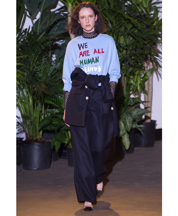 Политические надписи — тренд, который не планирует покидать ни Недели моды, ни хронику стритстайла. В этом сезоне дизайнеры высказывались на футболках — как Prabal Gurung, Creatures of Comfort, Opening Ceremony и Alice + Olivia. The Row оказались более уточенными и сделали маленькую надпись «свобода» в виде вышивки, а Public School вообще взял за основу мерч Дональда Трампа.