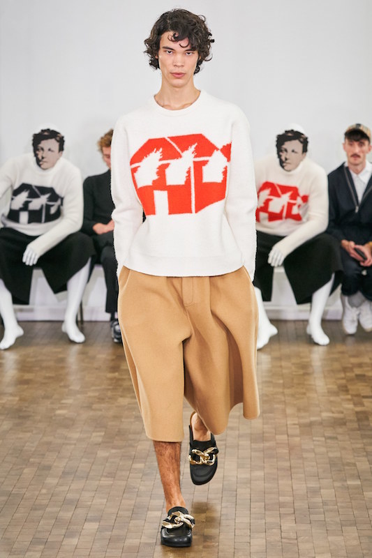 Джонатан Андерсон, страстный коллекционер искусства, не в первый раз извлекает из небытия полузабытых художников. В сезоне осень-зима 2020 он рассказывает миру о Дэвиде Войнаровиче, активисте по борьбе со СПИДом: в свое время художник зашил себе рот в знак протеста против политики администрации Рейгана во время эпидемии ВИЧ (30 лет спустя Петр Павленский, ссылаясь на работу Войнаровича, зашьет себе рот в поддержку Pussy Riot). На свитерах и шоперах J.W. Anderson печатают «Горящие дома» Войнаровича — граффити, которые в начале 1980-х художник рисовал на заброшенных зданиях Ист-Виллиджа. Средства от продажи этих вещей Андерсон отправит в фонд Visual AIDS, поддерживающий художников с ВИЧ-положительным статусом.