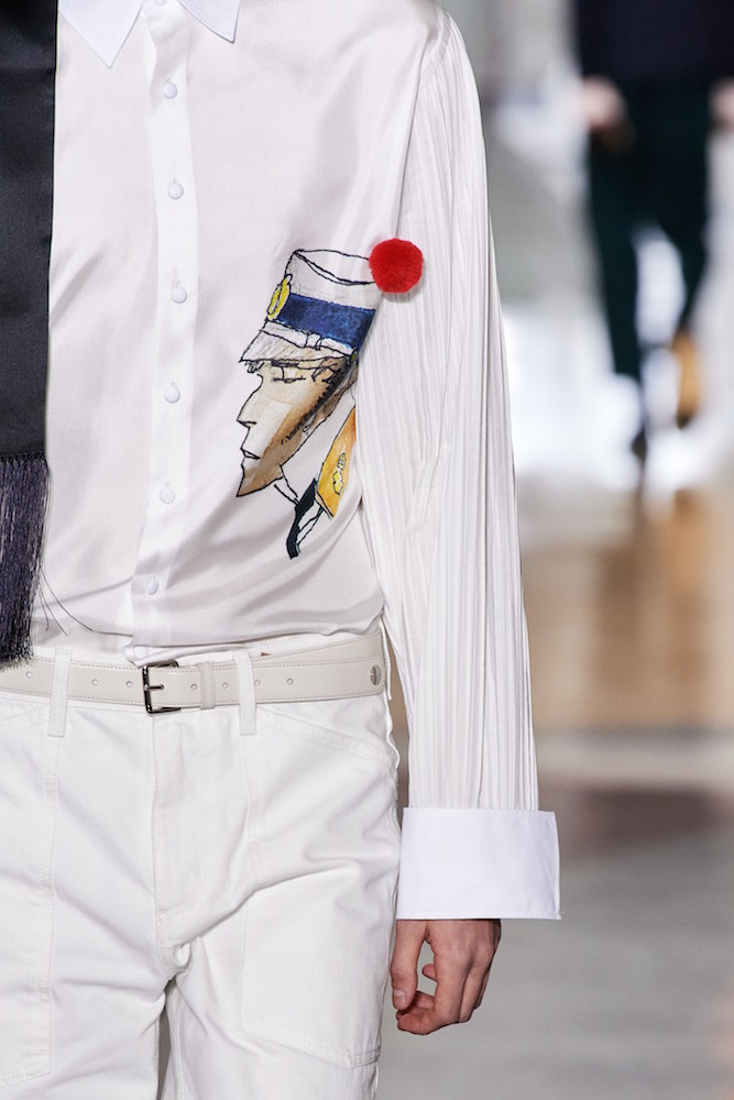 Мундир, галстук, густые бакенбарды, морская фуражка и сережка в левом ухе — каждый итальянский мальчишка узнает в этом описании капитана Корто Мальтезе, героя комиксов художника Уго Пратта. Приключения героя разворачиваются в Латинской Америке и Африке, в Европе, Сибири и Атлантиде. Мальтезе бесстрашен, строг и бесконечно обаятелен (есть мнение, что художник придумал своего героя под впечатлением от Остапа Бендера). В новой коллекции Lanvin изображения отважного капитана появляются на куртках, свитерах и белоснежных рубашках. А на черно-белых шарфах и бабочках можно разглядеть целые фрагменты о приключениях Корто Мальтезе с капитаном Распутиным.