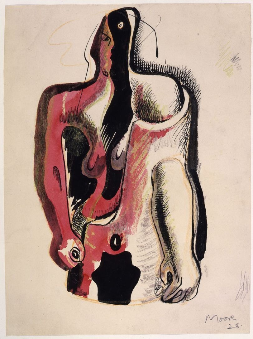 В осенне-зимней коллекции Alexander McQueen Сара Бертон предлагает одеться с ног до головы в раннюю работу Генри Мура «Три четверти» — картина была написана в 1928 году, когда скульптор, вернувшийся с войны, преподавал в Королевском художественном колледже Лондона. Абстракция с двумя переплетенными фигурами напечатана на строгих пальто и шелковых костюмах.