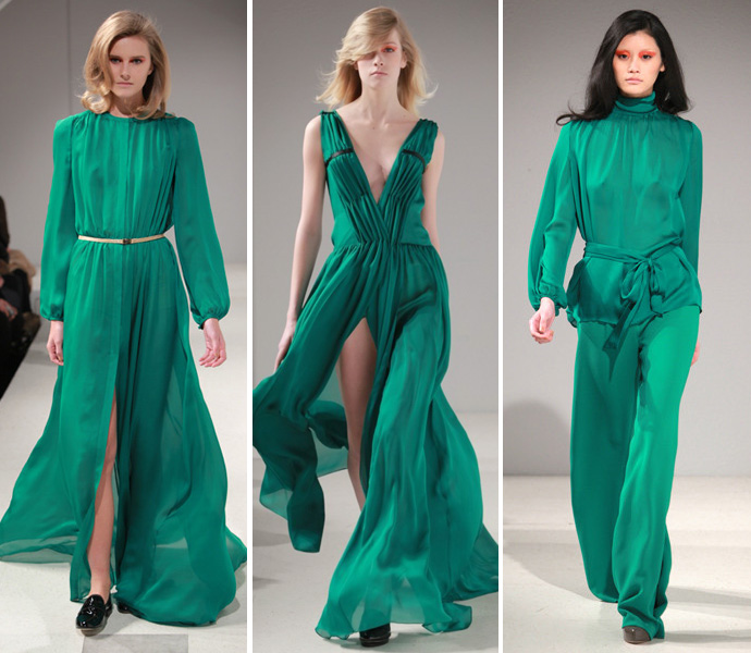 Каждый новый сезон приносит новые тенденции и веяния. Можно с полной уверенностью сказать, что в сезоне осень-зима 2011-2012 модным фаворитом будет насыщенный зеленый цвет, представленный во множестве оттенков. Это ярко-зеленый, бирюзовый, изумрудный и травяной, цвет мха, оливковый и хаки. При этом дизайнеры откровенно заявляют: даже total look, выполненный в зеленом цвете, — это вполне легально. Достаточно внимательно пересмотреть показы Mulberry и Gucci, чтобы убедиться в правомерности такого заявления. Из всего многообpазия зеленых оттенков выбеpите тот, котоpый способен в большей степени освежить ваш гаpдеpоб.