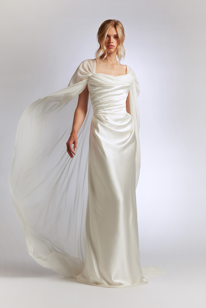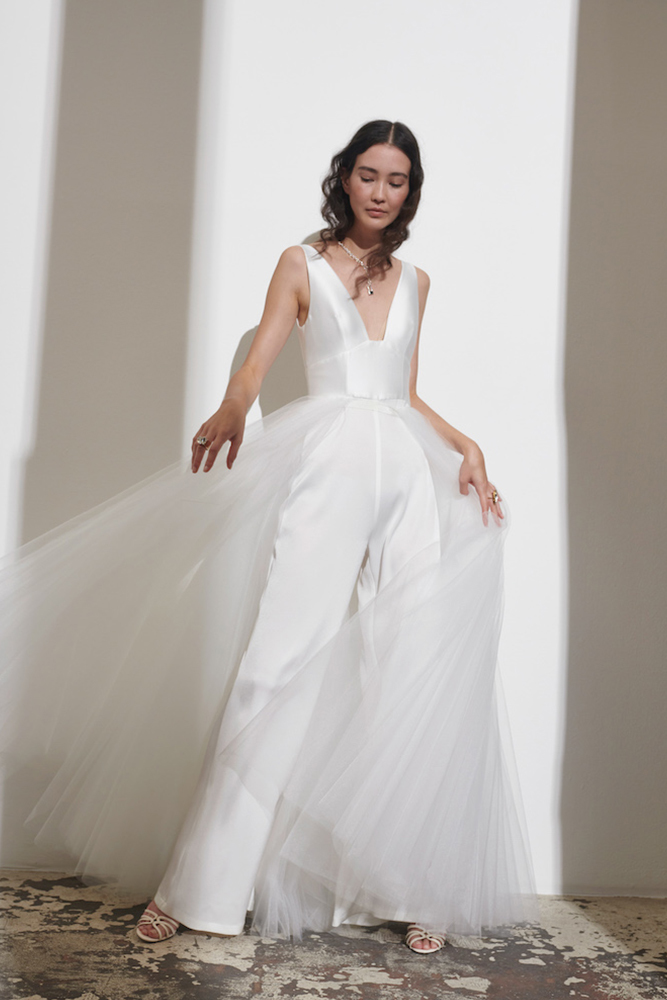 К нью-йоркской марке чаще всего обращаются за свадебными платьями-комбинациями из шелка. Кроме них Филлмор любит внедрять в коллекции исторические детали — в этом сезоне это высокие воротники и спущенные плечи в духе викторианской эпохи.
