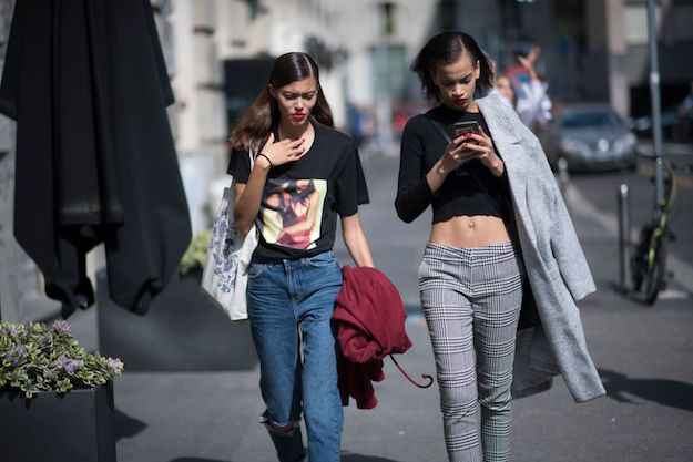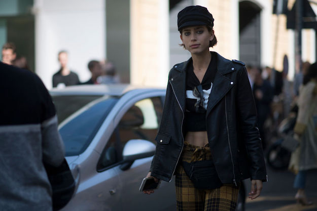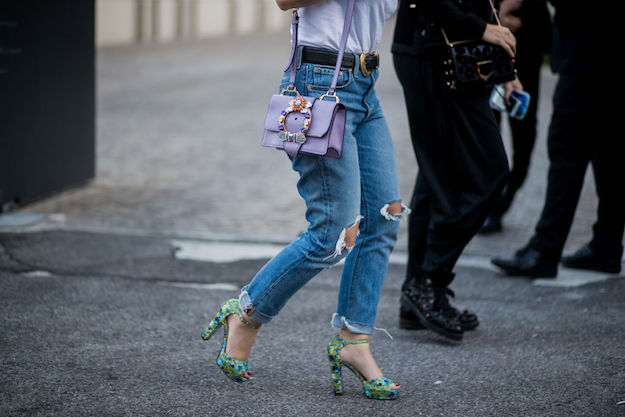 Розовые аксессуары, бахрома и бохо-шик, сандалии, белые футболки и толстовки — главные тренды с улиц Милана в последние дни Недели моды.