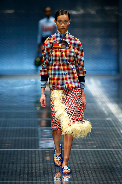 На осеннем показе Prada креативный директор модного дома Миучча Прада украсила страусиными перьями всю одежду: костюмы, юбки с пестрыми принтами, прозрачные платья и даже обувь. Lanvin показал белоснежную жилетку из перьев, а Marques Almeida и Rick Owens пошли еще дальше и представили шубы, имитирующие птичье оперение.
