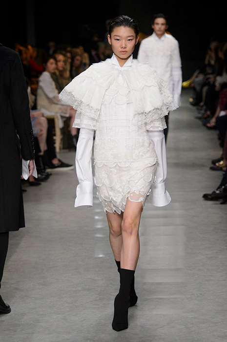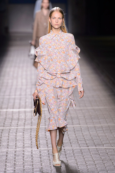 Из многоярусных платьев в неовикторианском стиле состояла почти вся весенне-летняя коллекция Rodarte. Эстетика готики конца XIX века чувствовалась даже в нарядах, выполненных в светлой гамме. Создательницы бренда всегда любили экспериментировать с женственными мифическими силуэтами, и последняя коллекция — не исключение. Она стала настоящей одой кружеву, тюлю и оборкам. Готические многоярусные юбки кипельно-белого и угольно-черного цвета показала Мария Грация Кьюри в своей дебютной коллекции для Christian Dior. Вслед за Кьюри ее бывший коллега по Valentino Пьерпаоло Пиччоли представил несколько многослойных исторических платьев в пол розового и лилового цветов. На показах Alexander McQueen и Off-White романтические силуэты также были выполнены в различных цветах. Многоярусные платья в духе романтизма хороши тем, что они уже сами по себе несут модный стейтмент и не требуют большого количества аксессуаров и обуви на высоком каблуке.